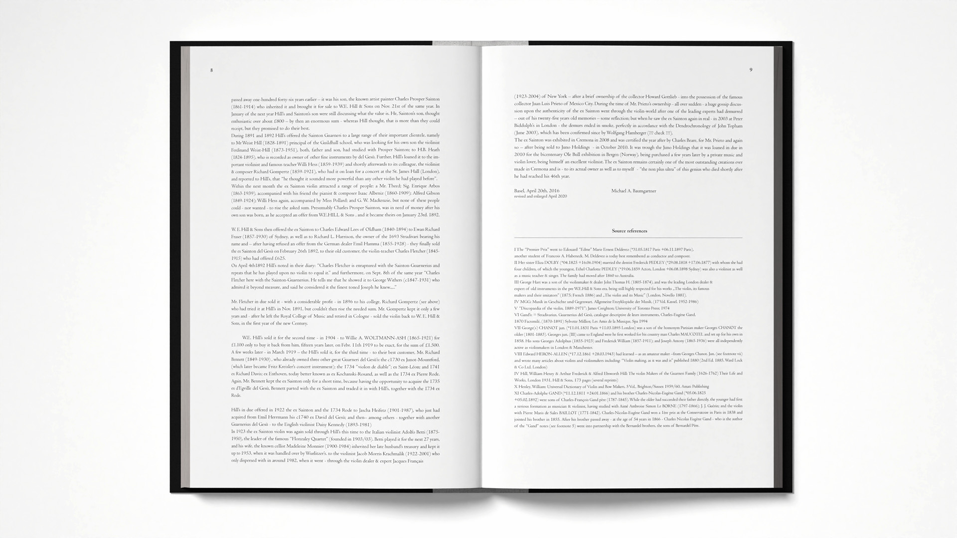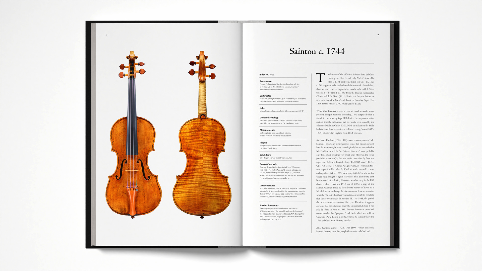 The most comprehensive collection ever made on the work of the great master Bartolomeo Giuseppe Guarneri ‚del Gesù‘. Around 200 instruments divided into several volumes, about 40 years meticulously researched provenances and life-size, finely printed photographs.